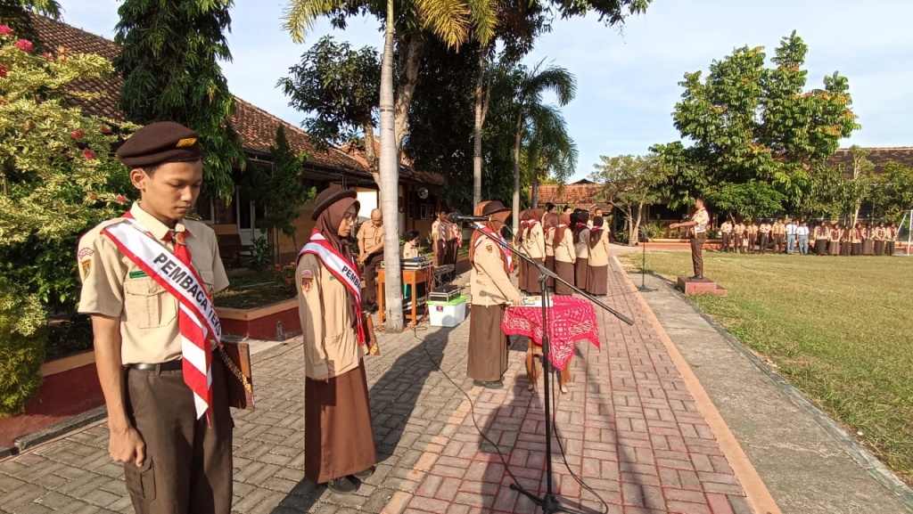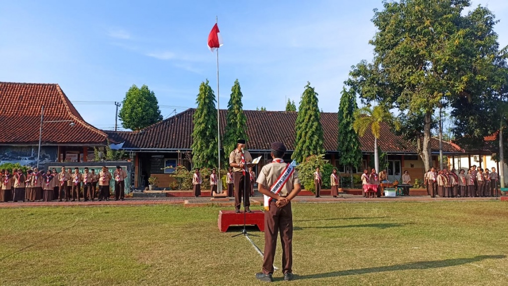 Upacara bendera yang dilaksanakan mulai pukul 07.00 sampai dengan 07.30 WIB. Seluruh Bapak/Ibu guru dan karyawan mengikuti upacara dengan seragam pramuka lengkap. Bertindak sebagai pembina upacara, Bapak Agus Dwi Prasetyo, S.Pd. Upacara berjalan lancar, tertib, dan khidmat.